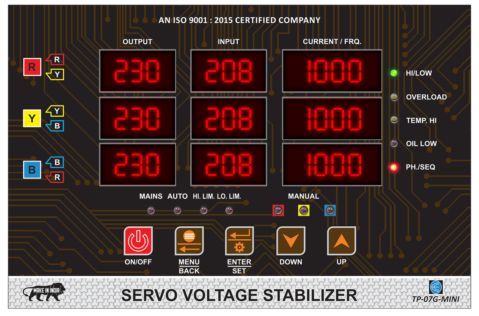 - TRIAC based controlled voltage for enhanced life of Servo Motor.